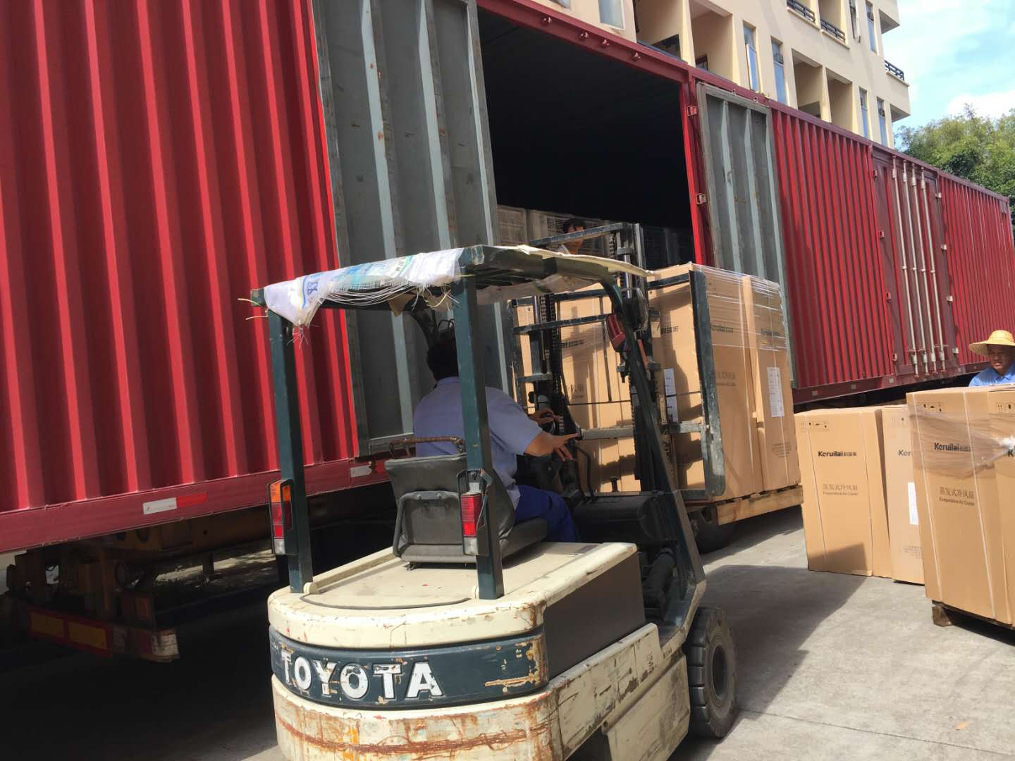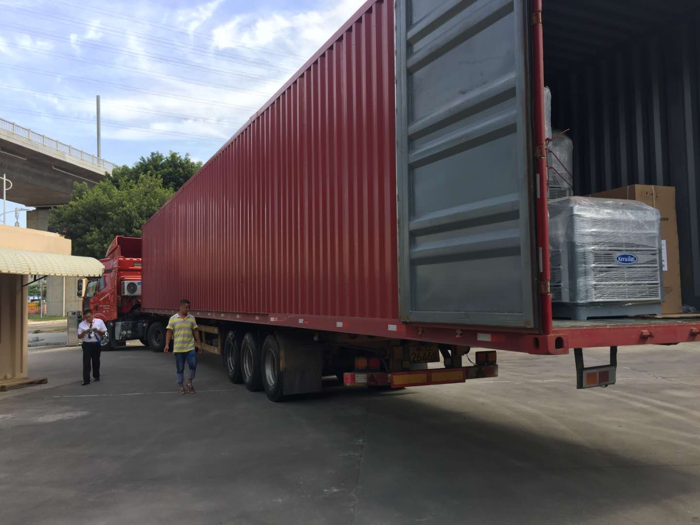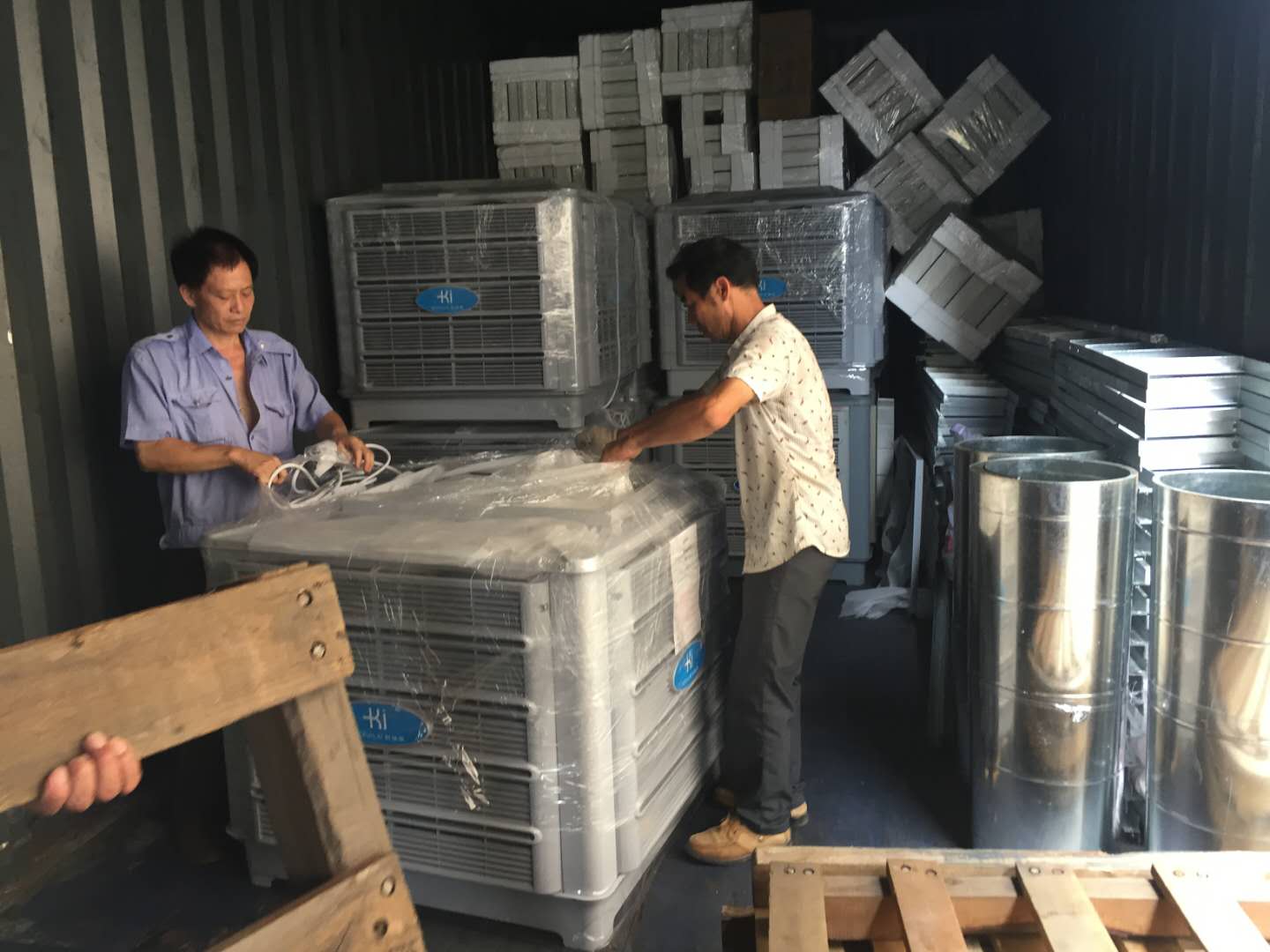 22.5米車廂整整一車科瑞萊工業環保冷風機空調KD18機器整裝待發,謝謝客戶對我們科瑞萊品牌的信任與支持。